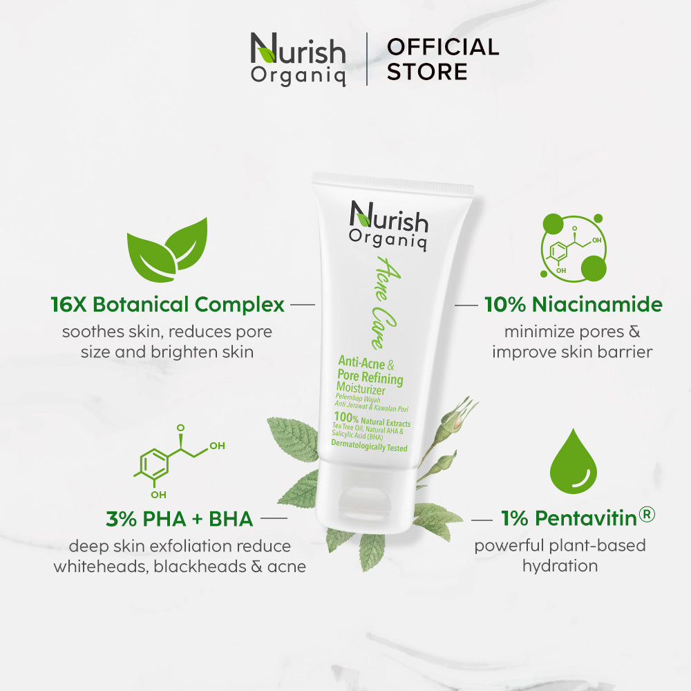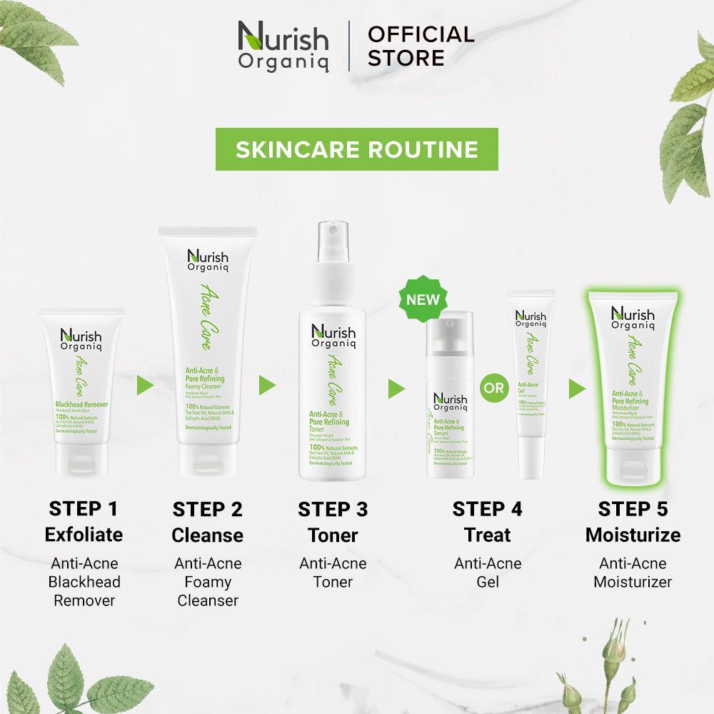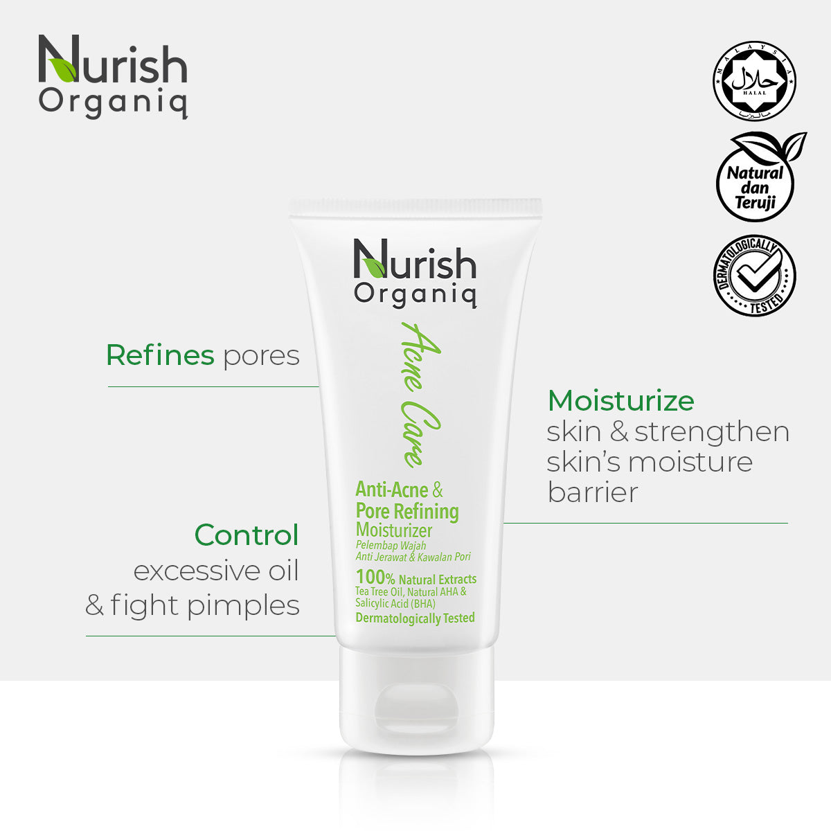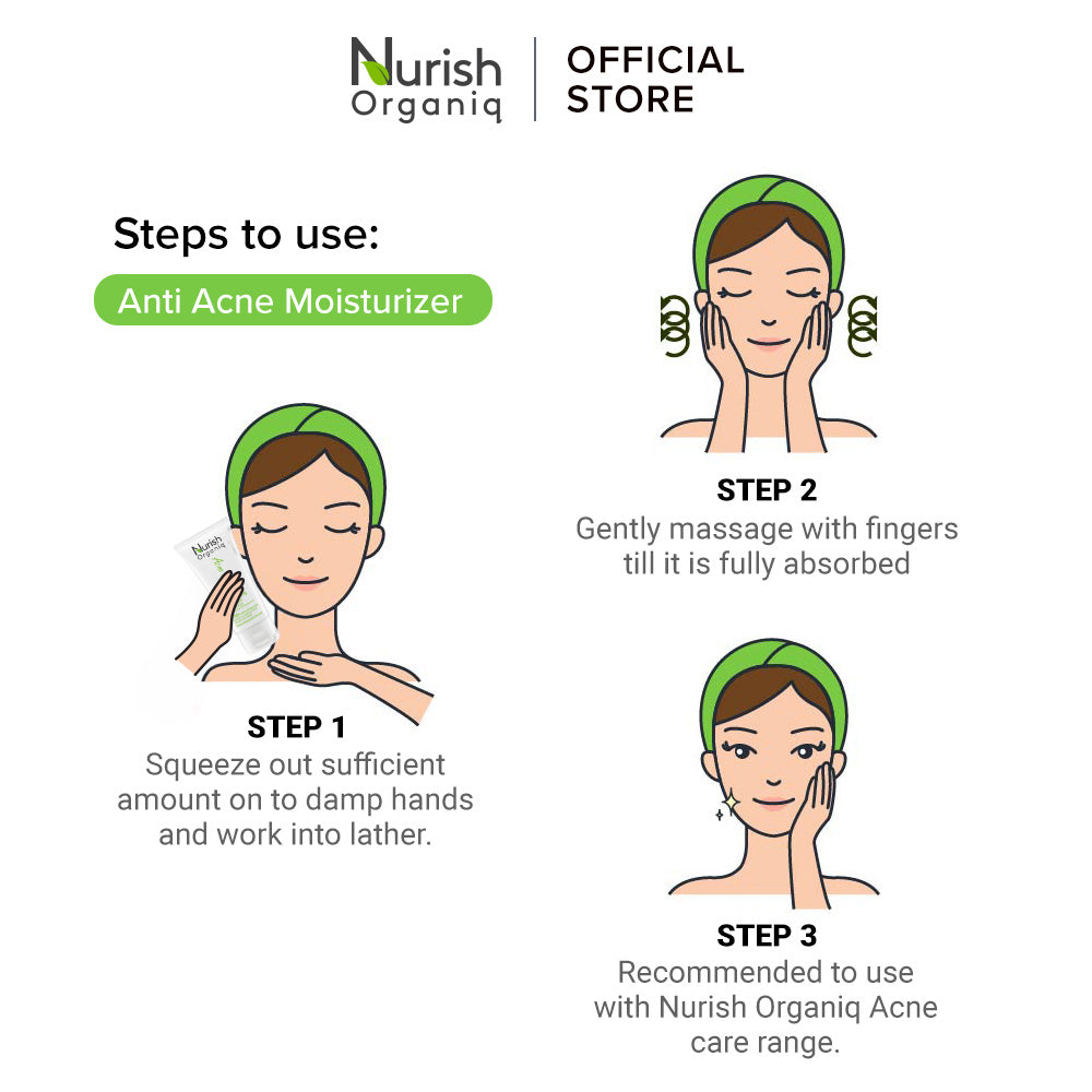 Gently apply a generous amount of cream in circular motion over face & neck until fully absorbed. Recommend to use with Nurish Organiq Acne Care range.