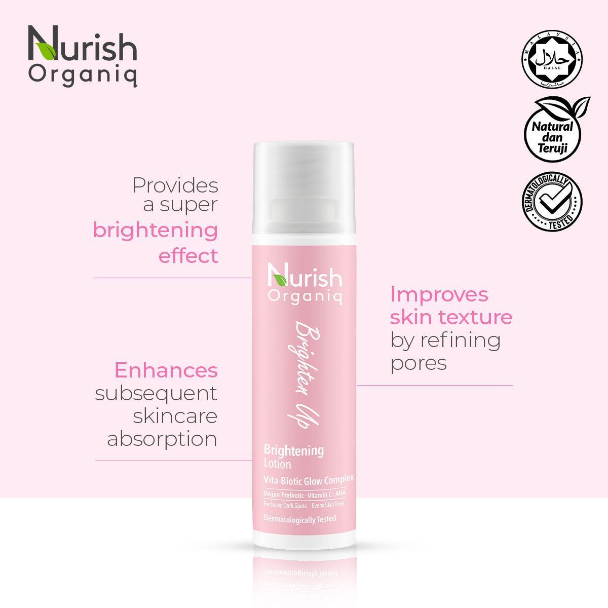 Pour a sufficient amount onto the palm & apply gently onto cleansed face and neck. Recommend to use with Nurish Organiq Brighten Up range.