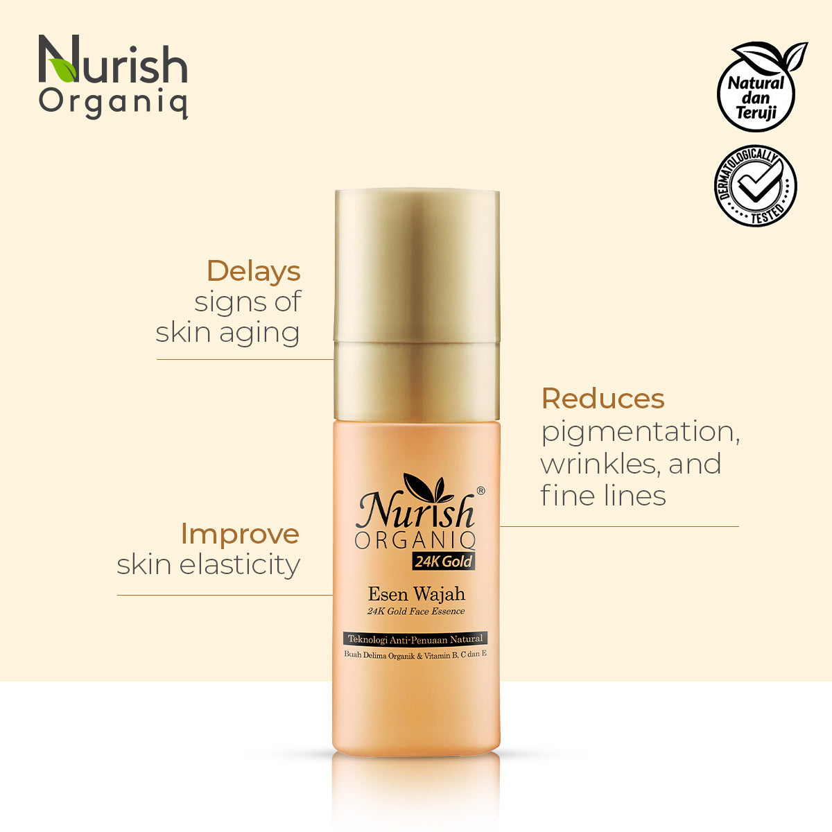 Gently apply all over face and neck, massage in circular motion. Recommended to use with Nurish Organiq 24K Gold range.