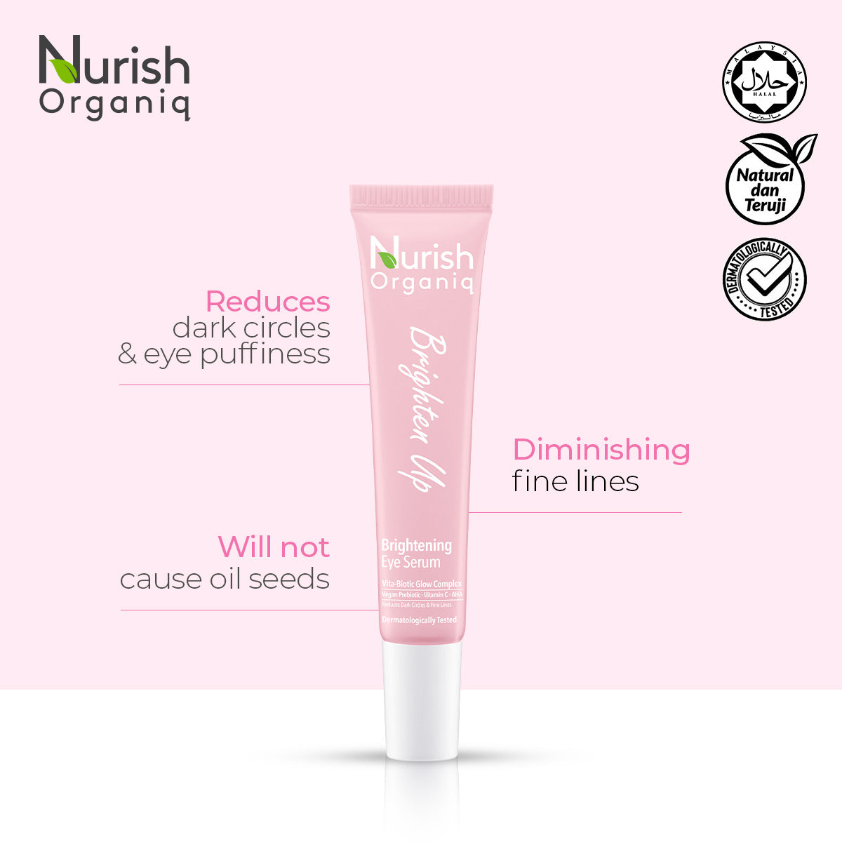 Squeeze a sufficient amount on fingertips & gently tap around the eye area. Massage in a circular motion until thoroughly absorbed. Recommend to use with Nurish Organiq Brighten Up range.