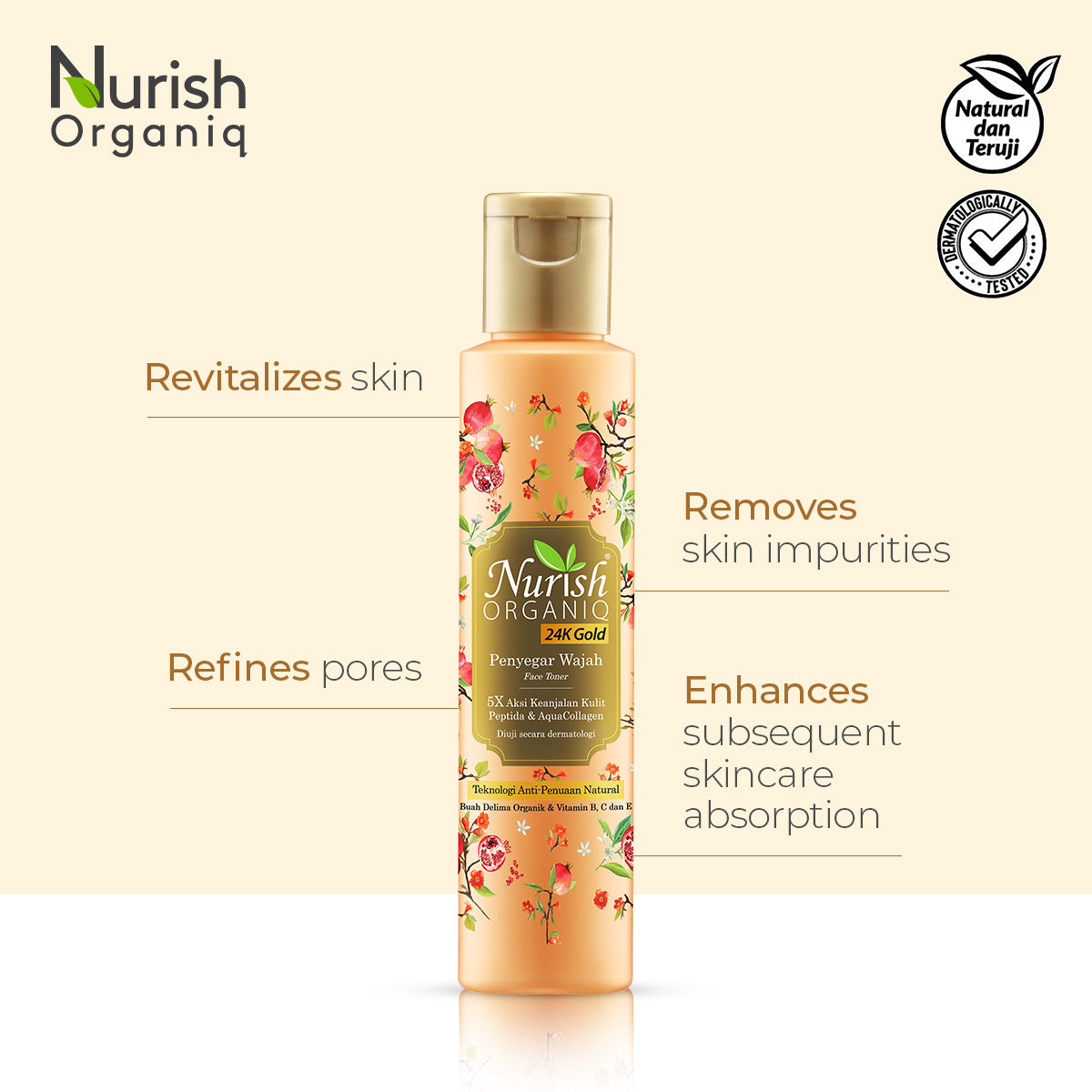 Nurish Organiq skincare range is formulated with 100% natural extracts and organic ingredients without any harmful ingredients. It's dermatologically tested and free from artificial colouring, mineral oil, SD-alcohol, lanolin, sulphate, paraben and no comedogenic ingredients.