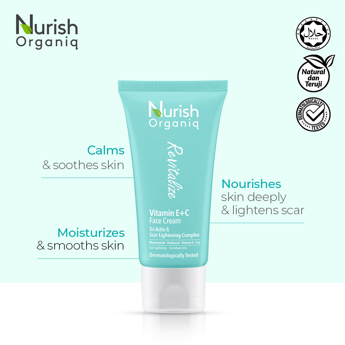 Rangkaian penjagaan kulit Nurish Organiq diformulasikan dengan 100% ekstrak semulajadi dan bahan organik tanpa sebarang bahan berbahaya. Ia telah diuji secara dermatologi dan bebas daripada pewarna tiruan, minyak mineral, alkohol SD, lanolin, sulfat, paraben dan tiada bahan komedogenik.